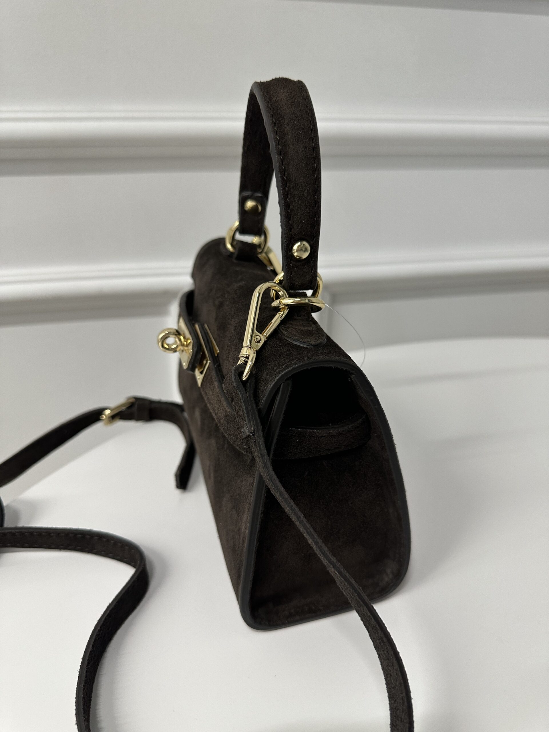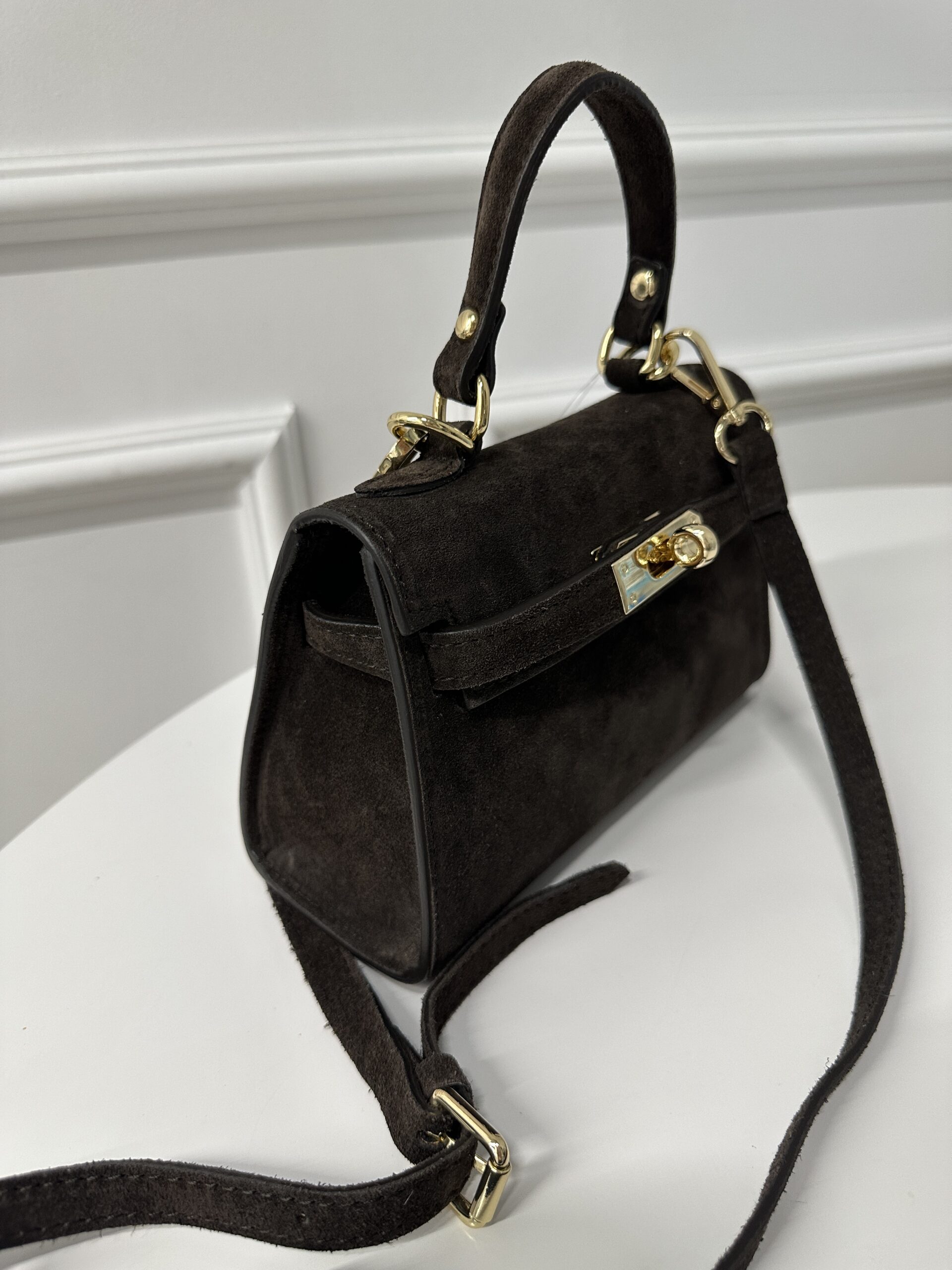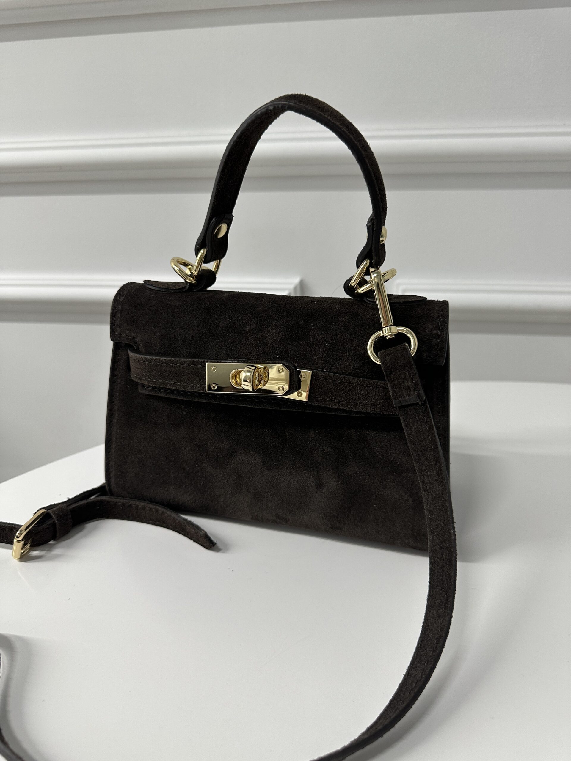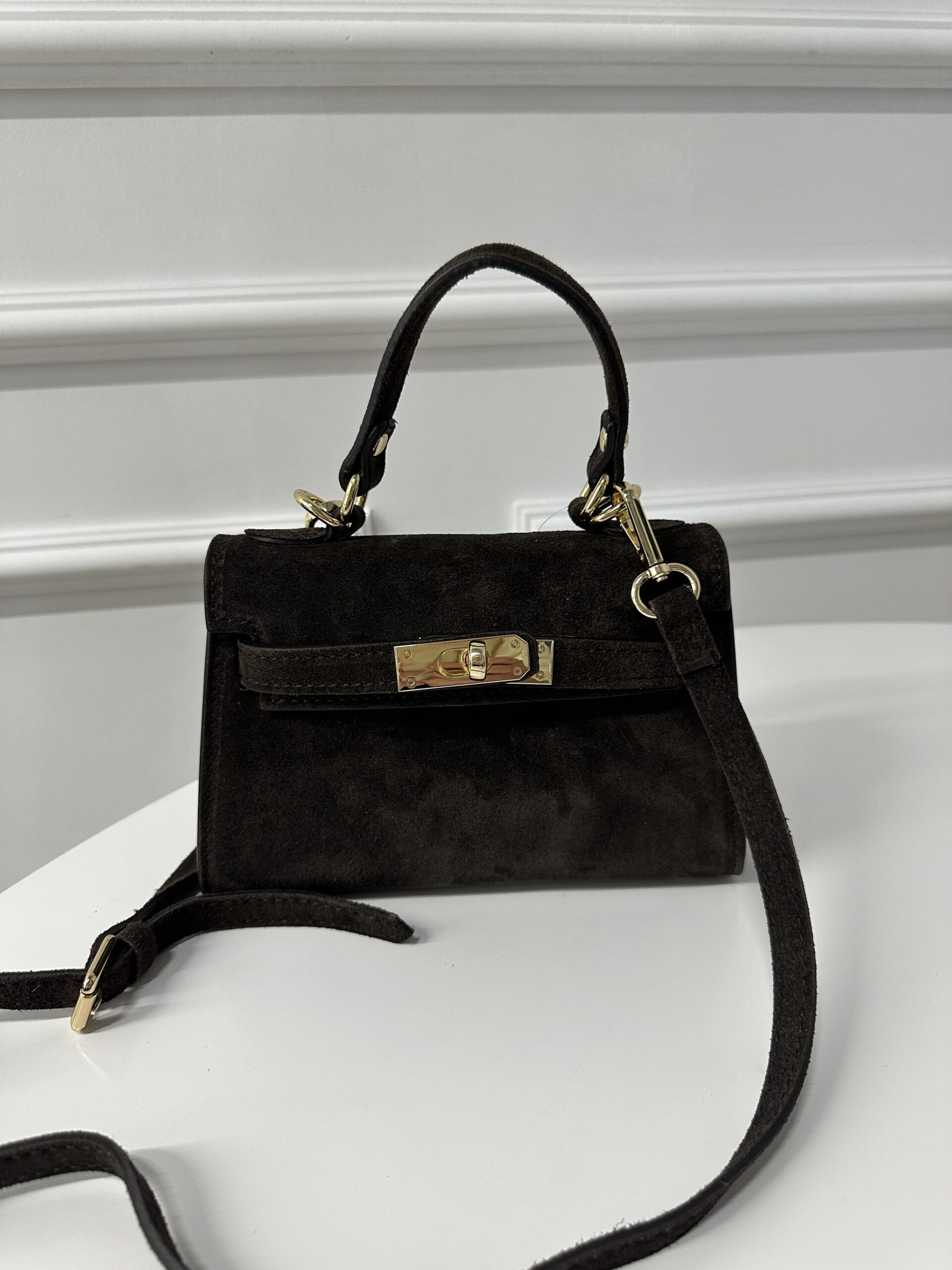 Mini zamszowa torebka z dekoracyjnym zapięciem
