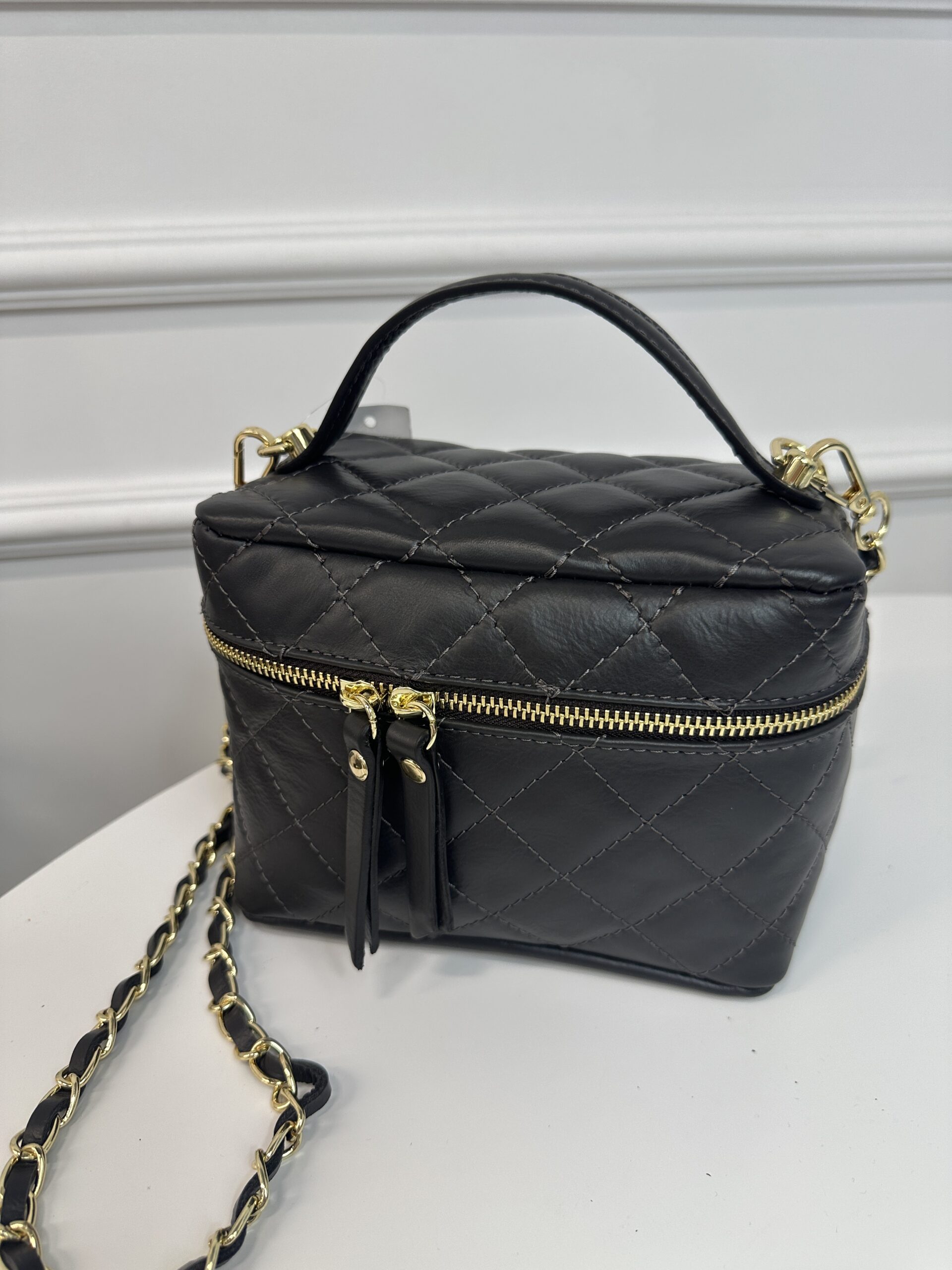 Mini skórzany przepikowany kuferek