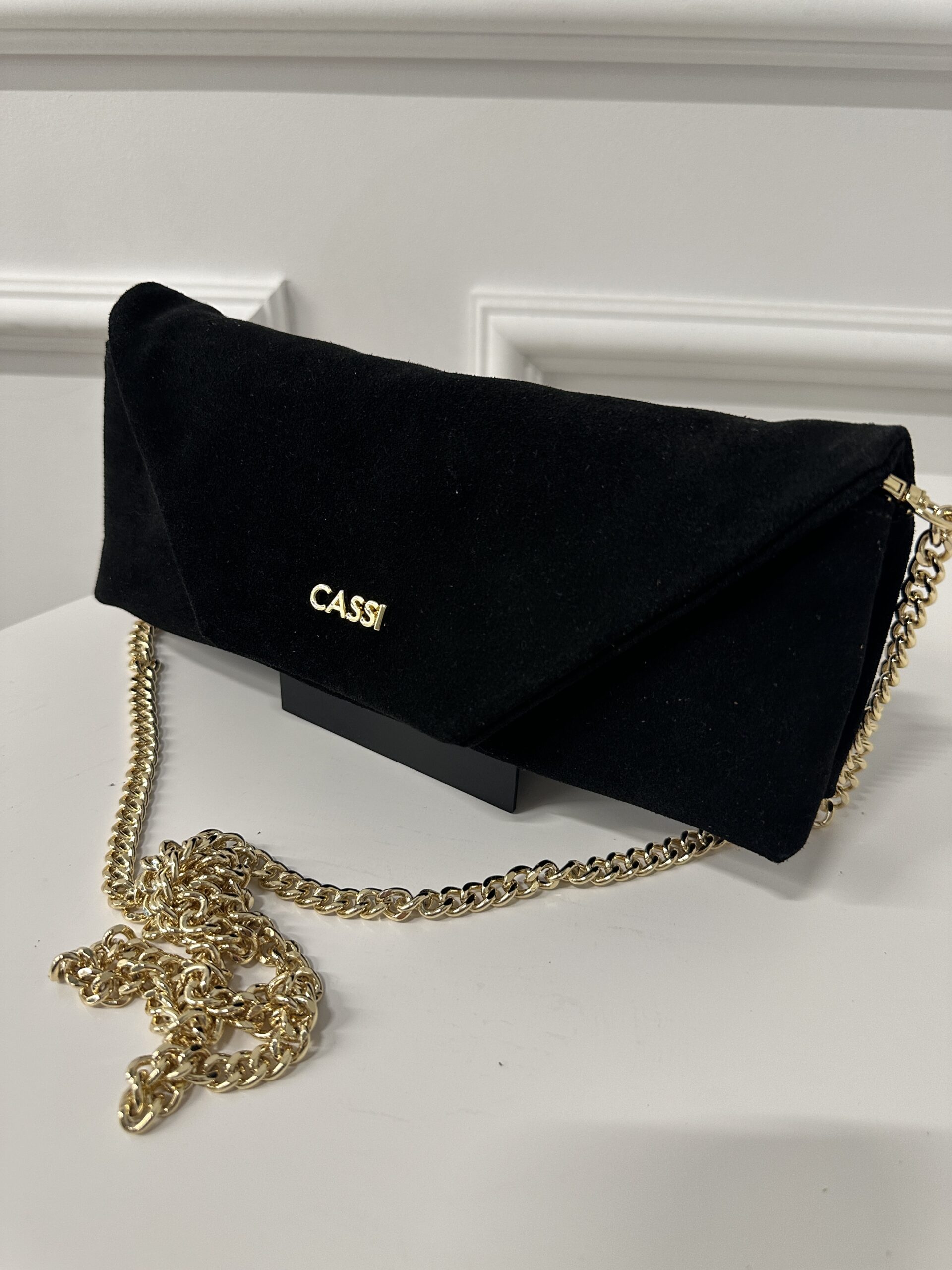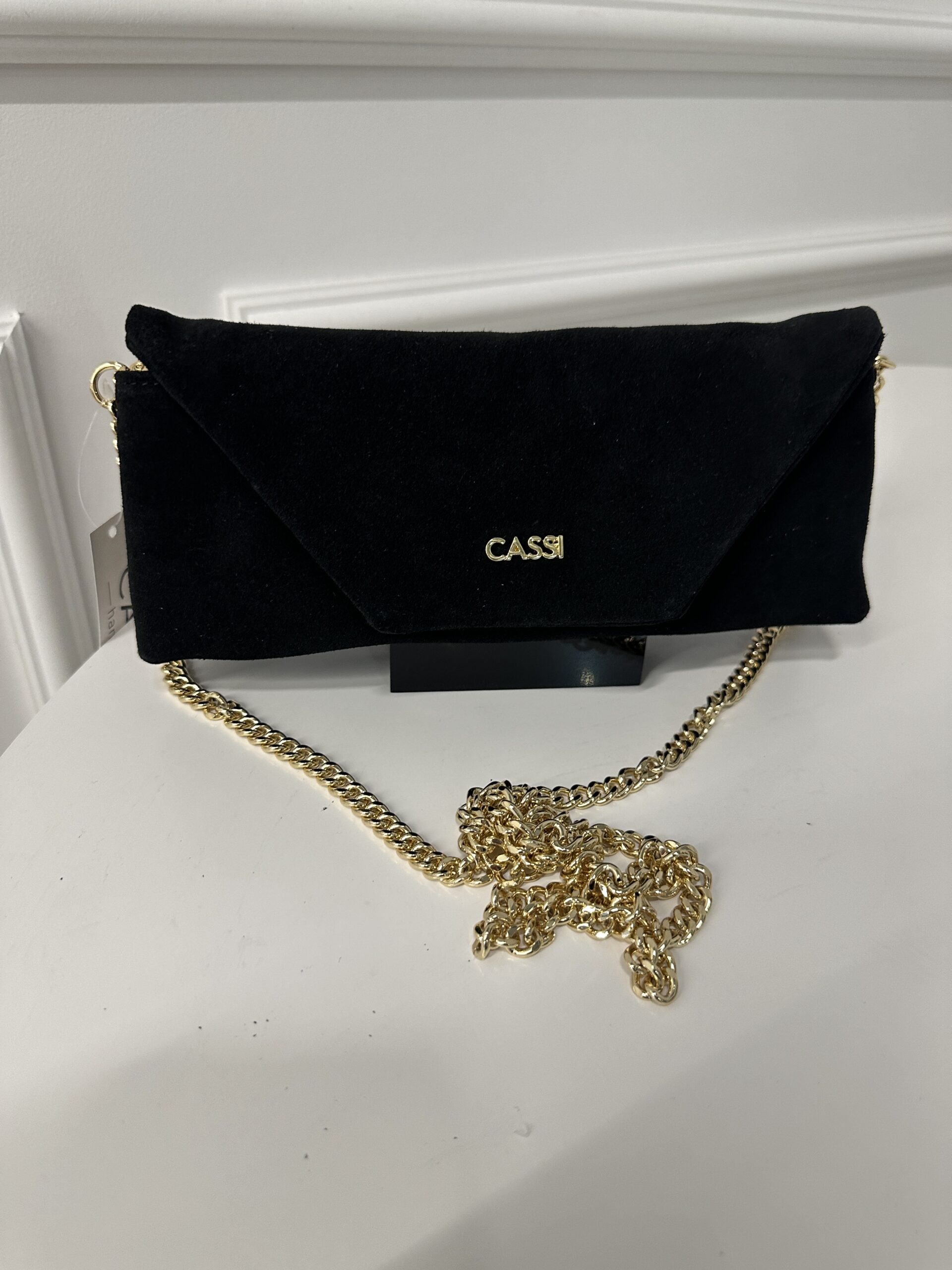Świetnie wykonana z dbałością o każdy szczegół mała torebka wykonany ze skóry zamszowej w kolorze brązu . Klasyczny model .Wewnątrz jedna komora . Torebka posiada pasek -łańcuszek z dodatkiem skóry zamszowej dodaje torebce elegancji. Z przodu torebki złote okucie nazwa Cassi . Torebka malutka ale niezwykle pakowna jest biżuteryjnym dodatkiem do eleganckiej stylizacji.