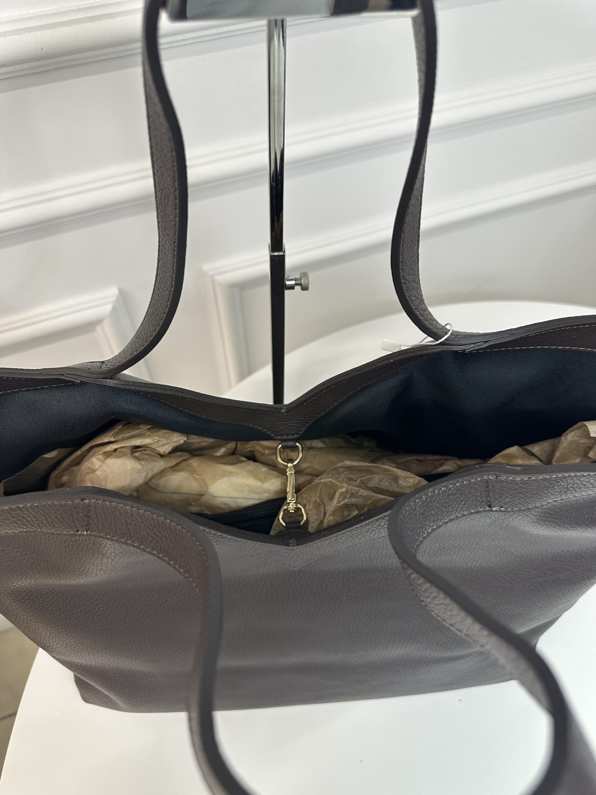Może to zniszczyć jej kolor. Należy unikać kontaktu torebki z innymi skórzanymi przedmiotami. Nie przechowywać jej w plastikowych opakowaniach. Kontakt z tymi materiałami może mieć wpływ na zmianę koloru skóry. Nie należy używać środków chemicznych do czyszczenia i konserwacji skóry (rozpuszczalników, benzyny, zmywaczy itp.). Najlepiej przechowywać produkt w dołączonym do niego materiałowym woreczku. Aby torebka nie uległa deformacji można wypełnić jej wnętrze. Przed kontaktem z jasnymi tkaninami należy dokładnie wyczyścić pasek i torebkę suchą bawełnianą tkaniną.