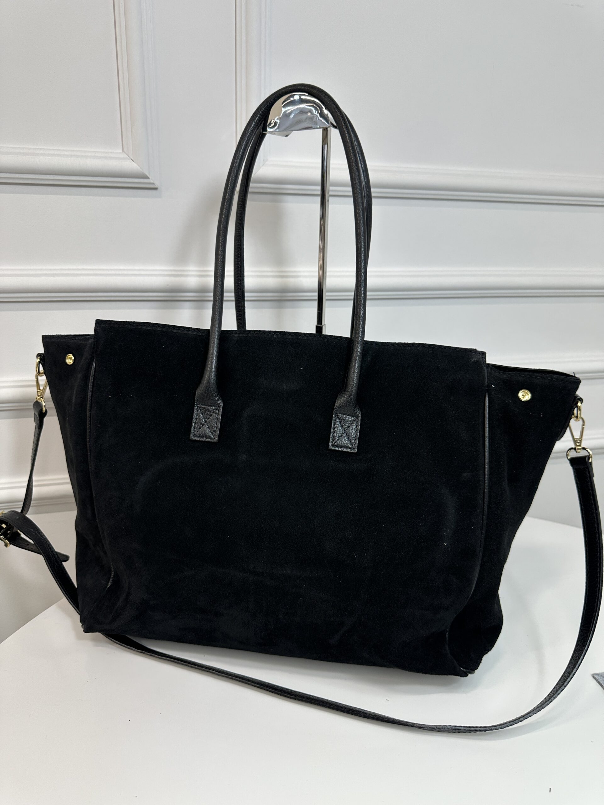 Zamszowa duża torba damska -czarna