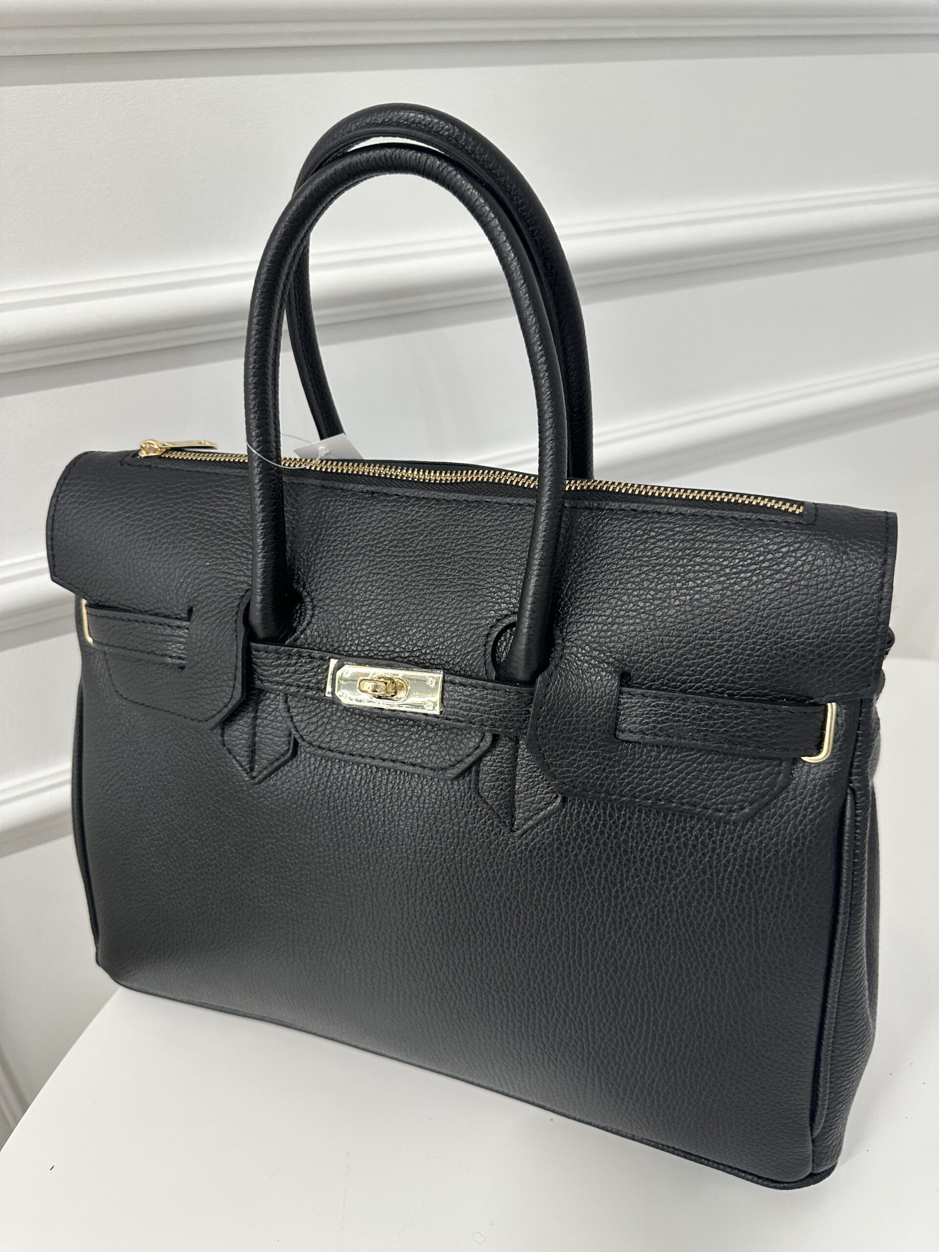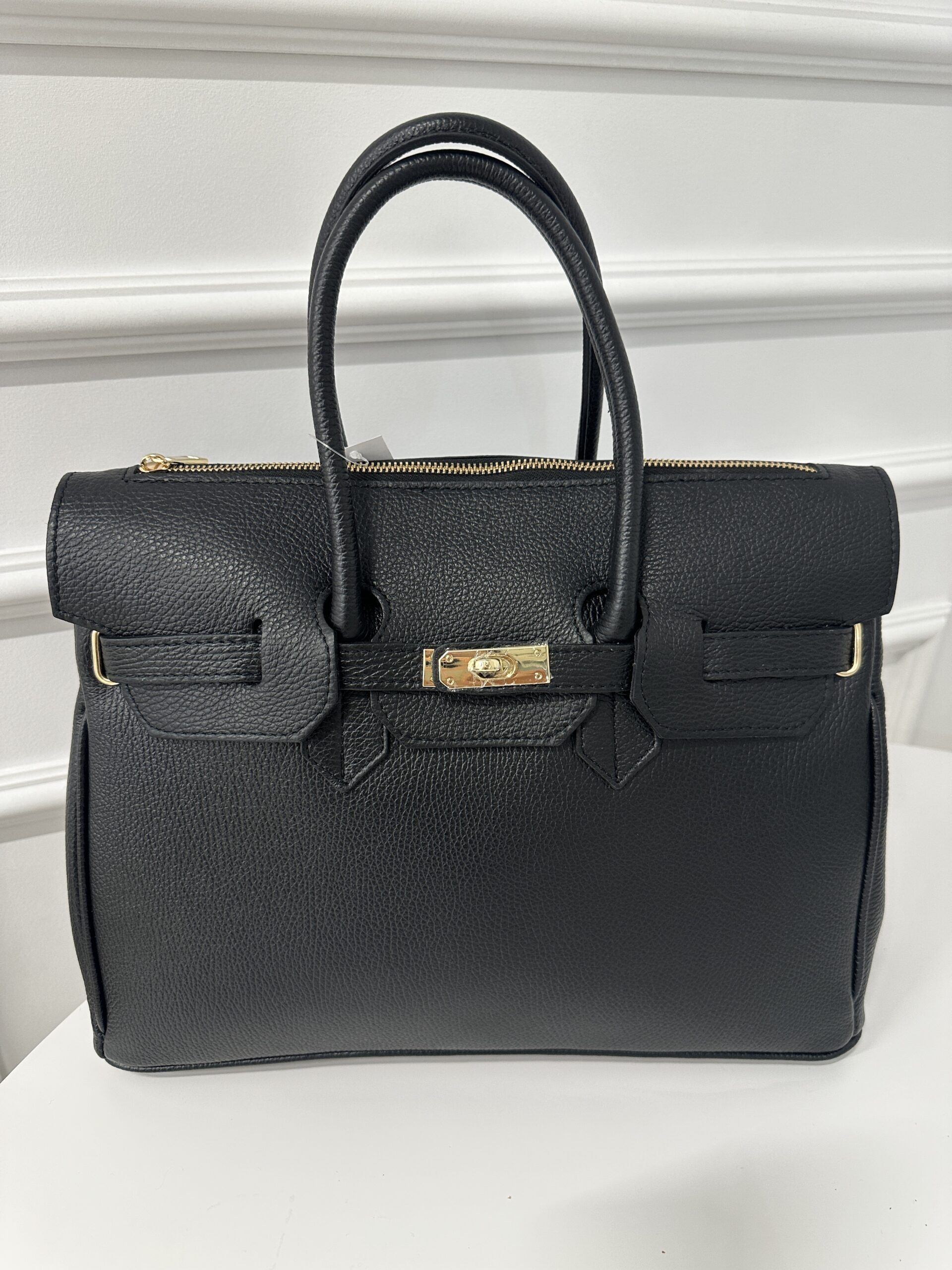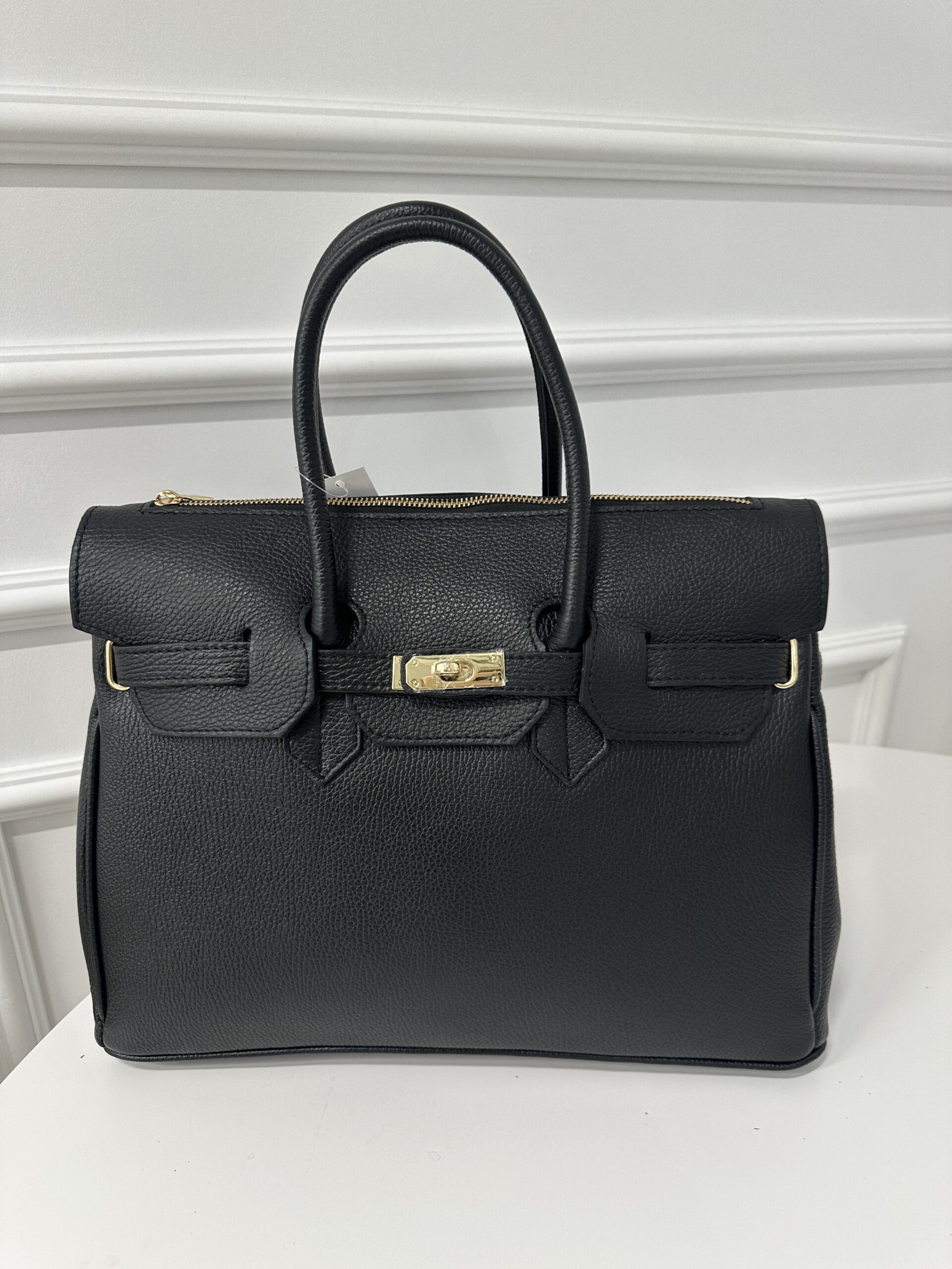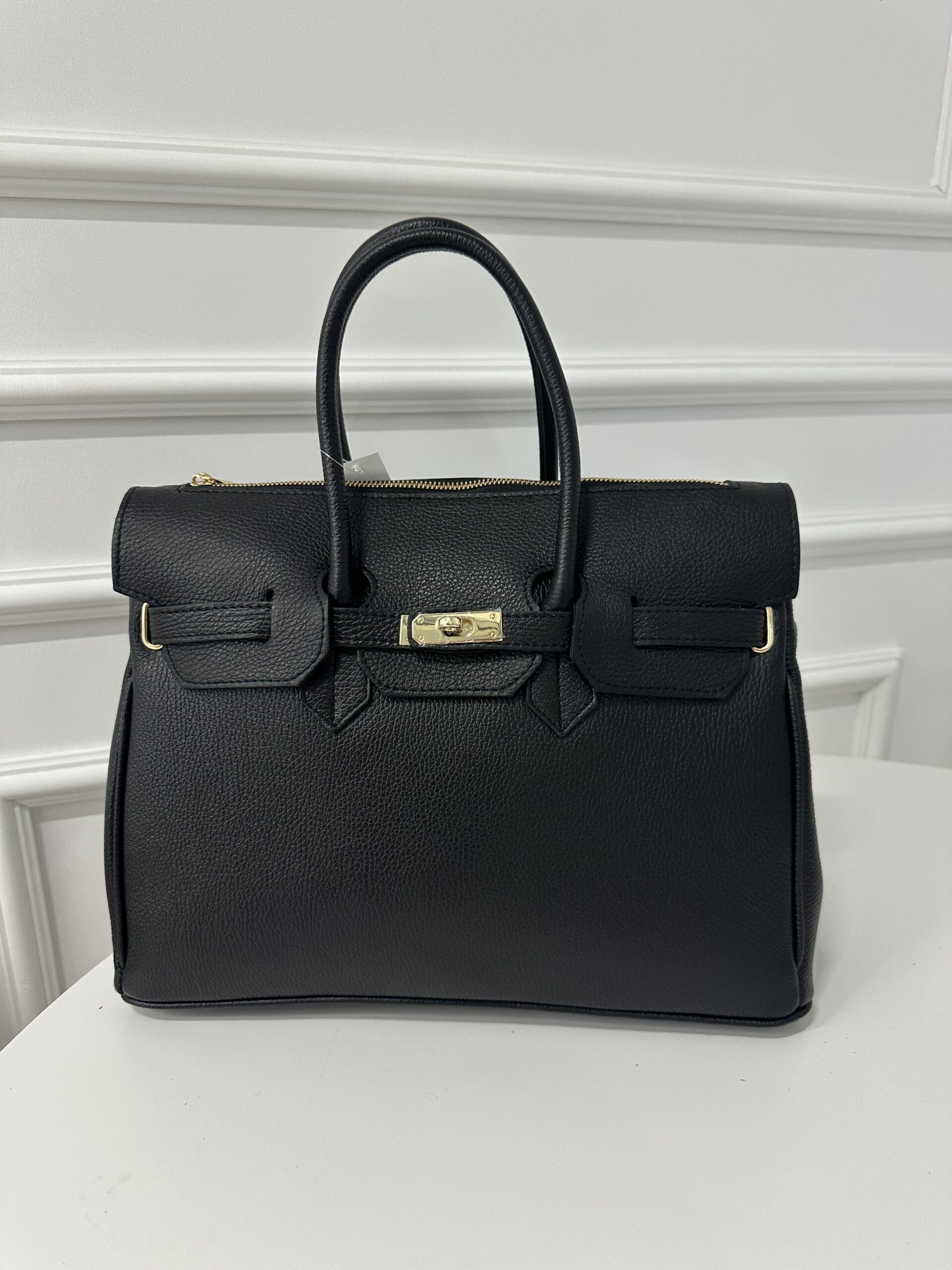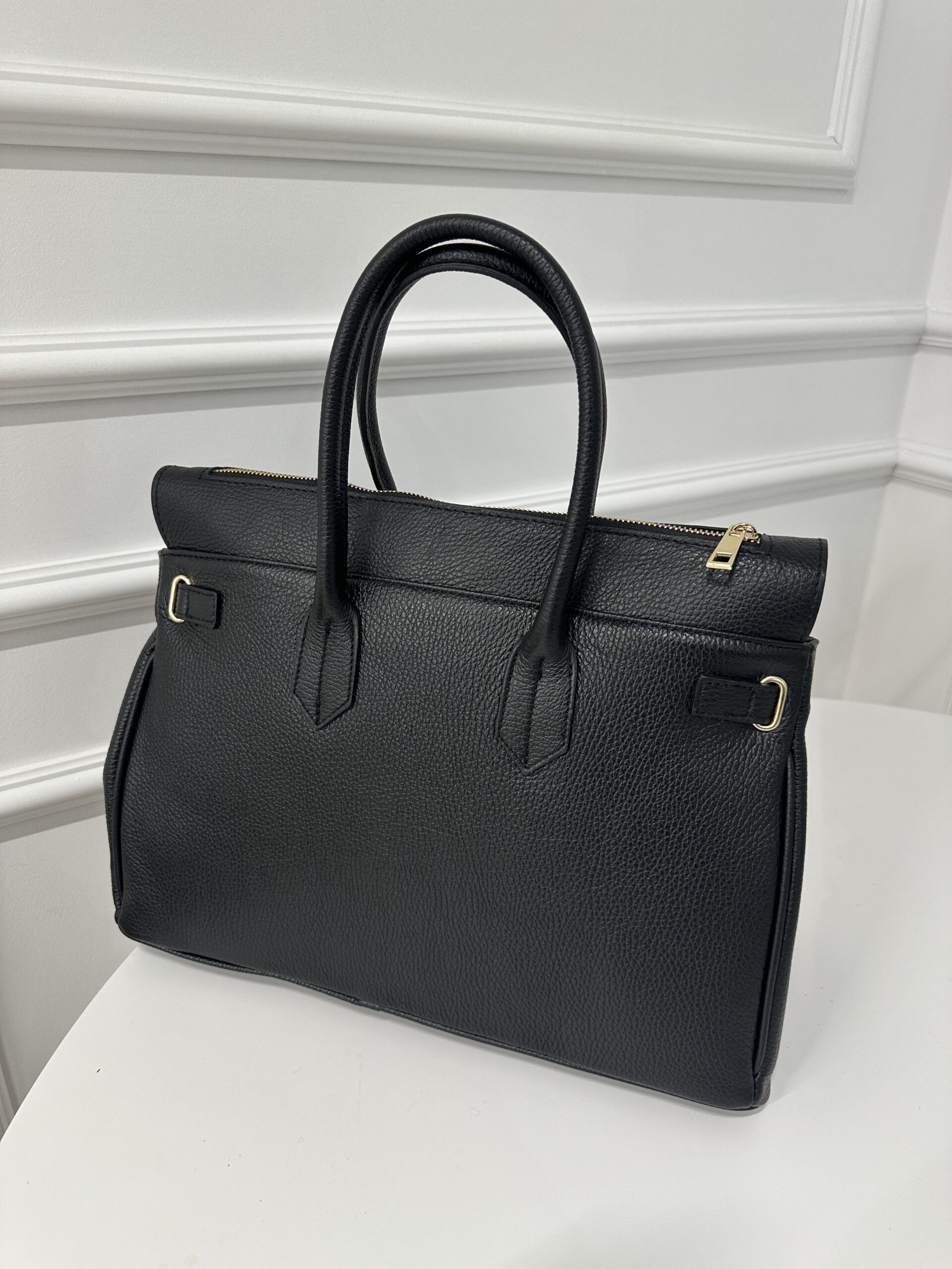 Elegancka modna torba Kuferek- teczka , wykonana z grubej groszkowej skóry naturalnej. Torebka nada każdej stylizacji klasy i szyku . Mieści format A4 podręczny i funkcjonalny. Wnętrze składa się z obszernej komory z kieszonką na telefon lub drobiazgi. Okucia w kolorze złotym. Torebka posiada wygodne rączki do noszenia ,nie posiada dodatkowego długiego paska.