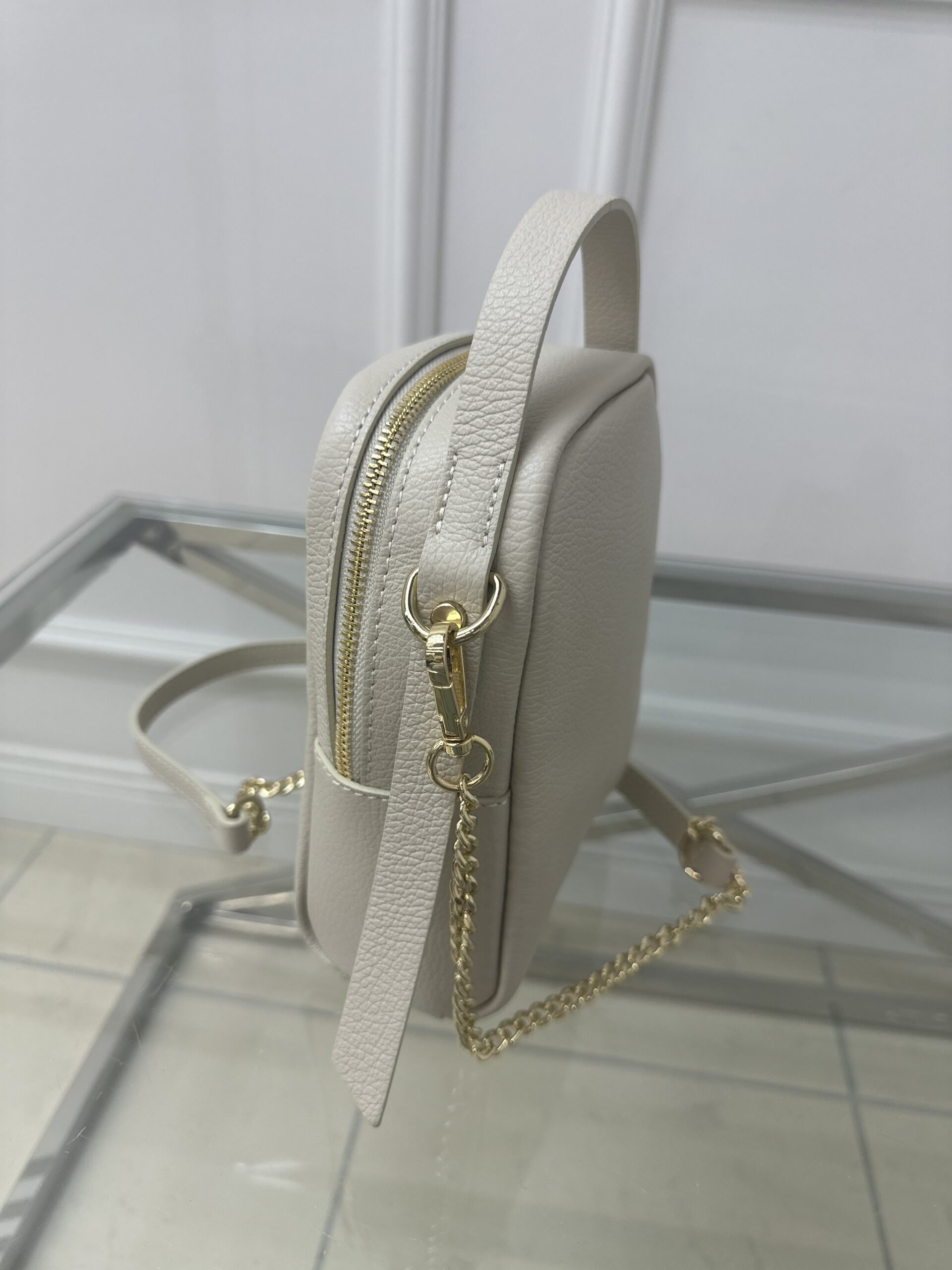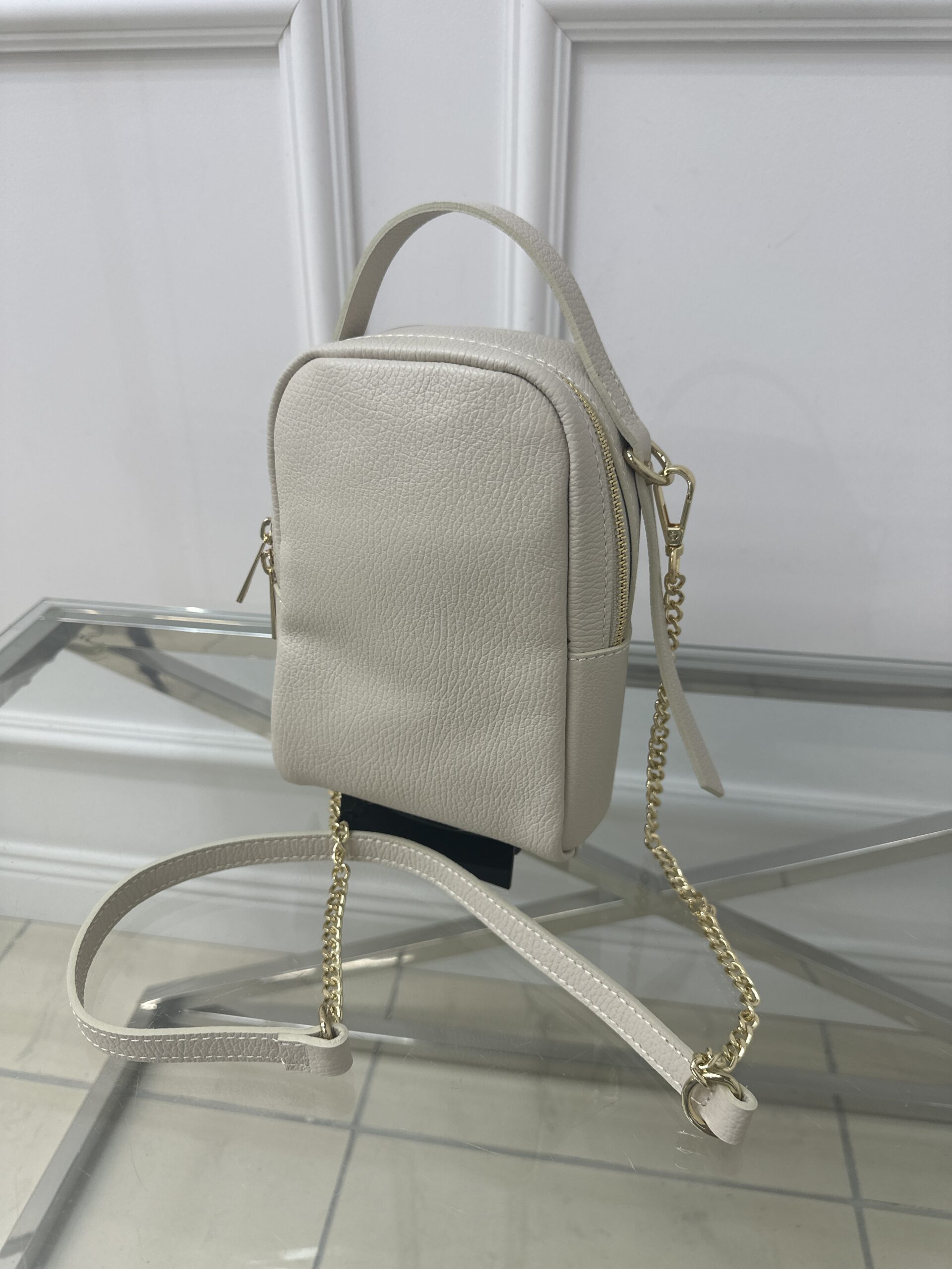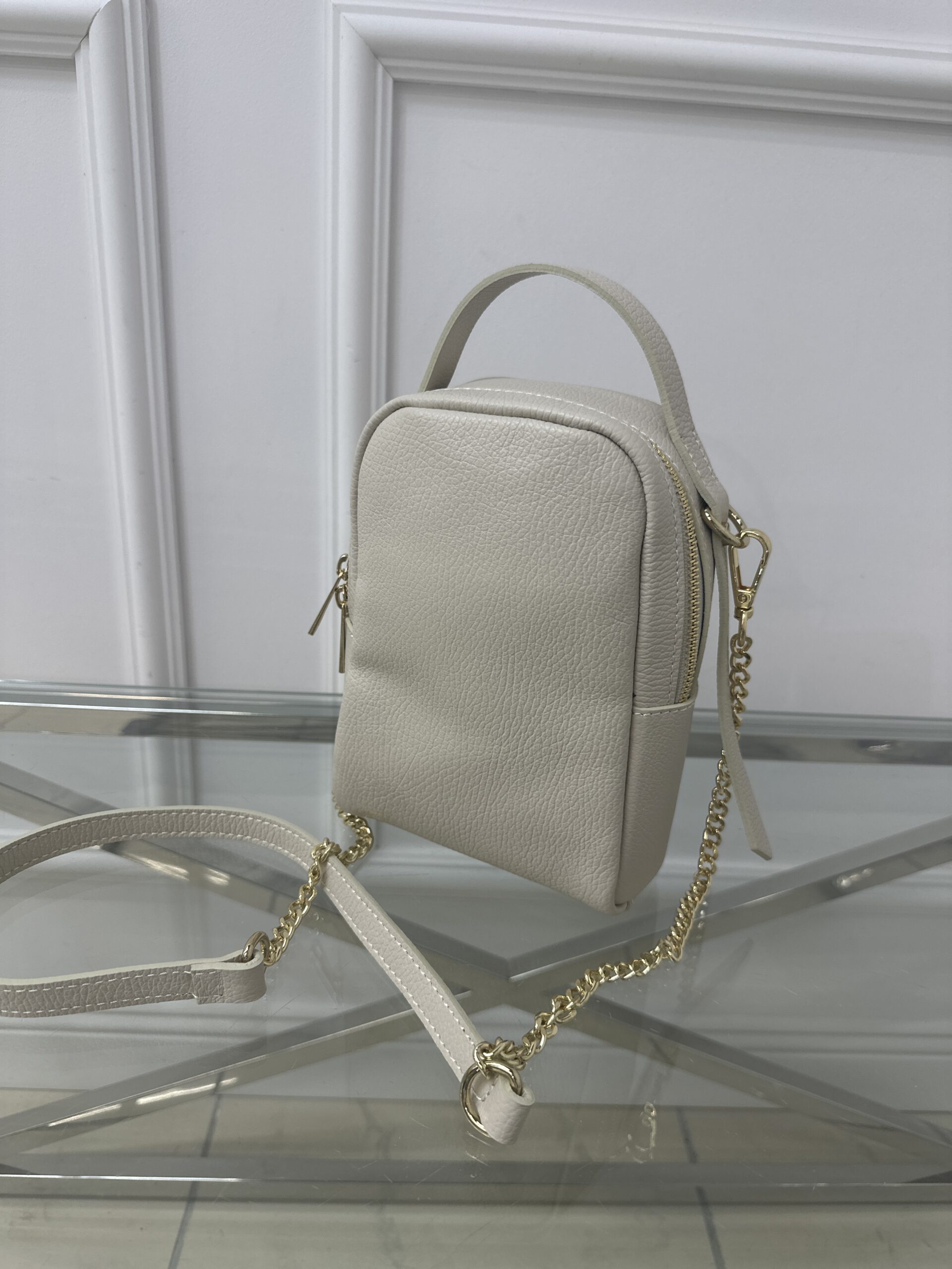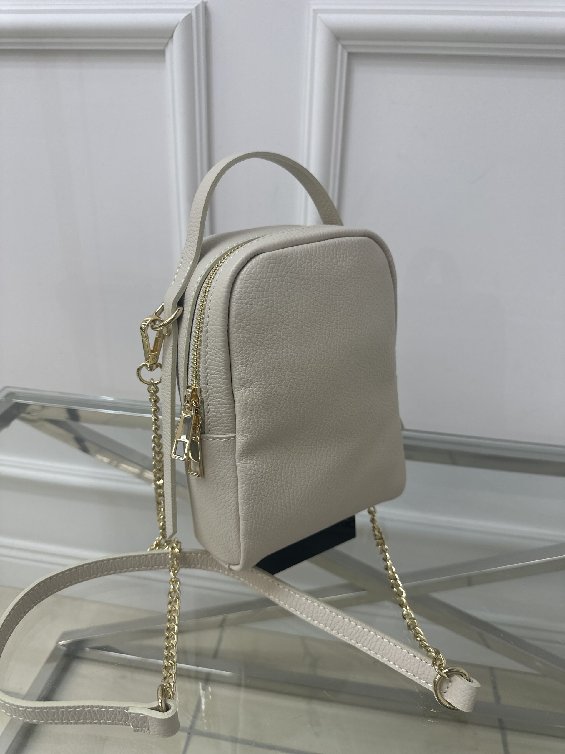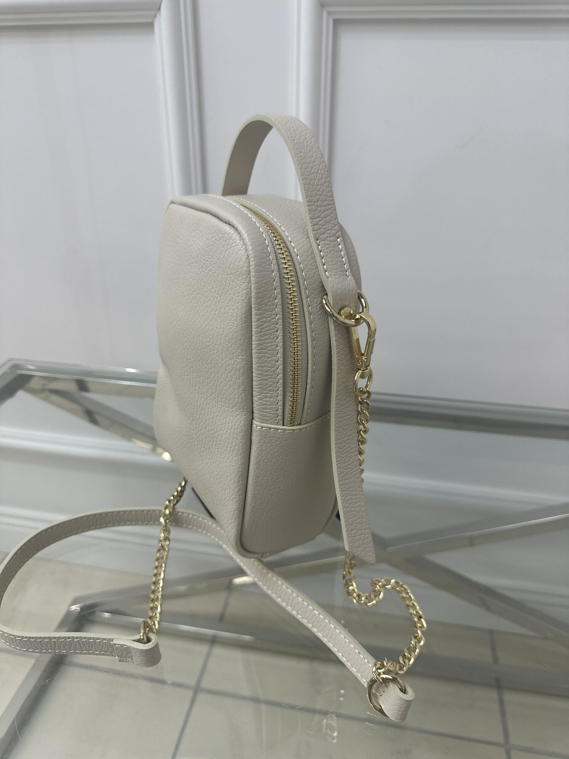 Zachwyć się nowa torebką Cassi -wiaderko, która sprawi ze każda stylizacja zyska na elegancji i ponadczasowym charakterze. Mini torebka w klasycznym jasno beżowym kolorze wykonana została ze skóry . Mała ale niezwykle praktyczna i wygodna w noszeniu. Torebka  posiada wygodna rączkę także skórzany połączony z łańcuszkiem pasek.