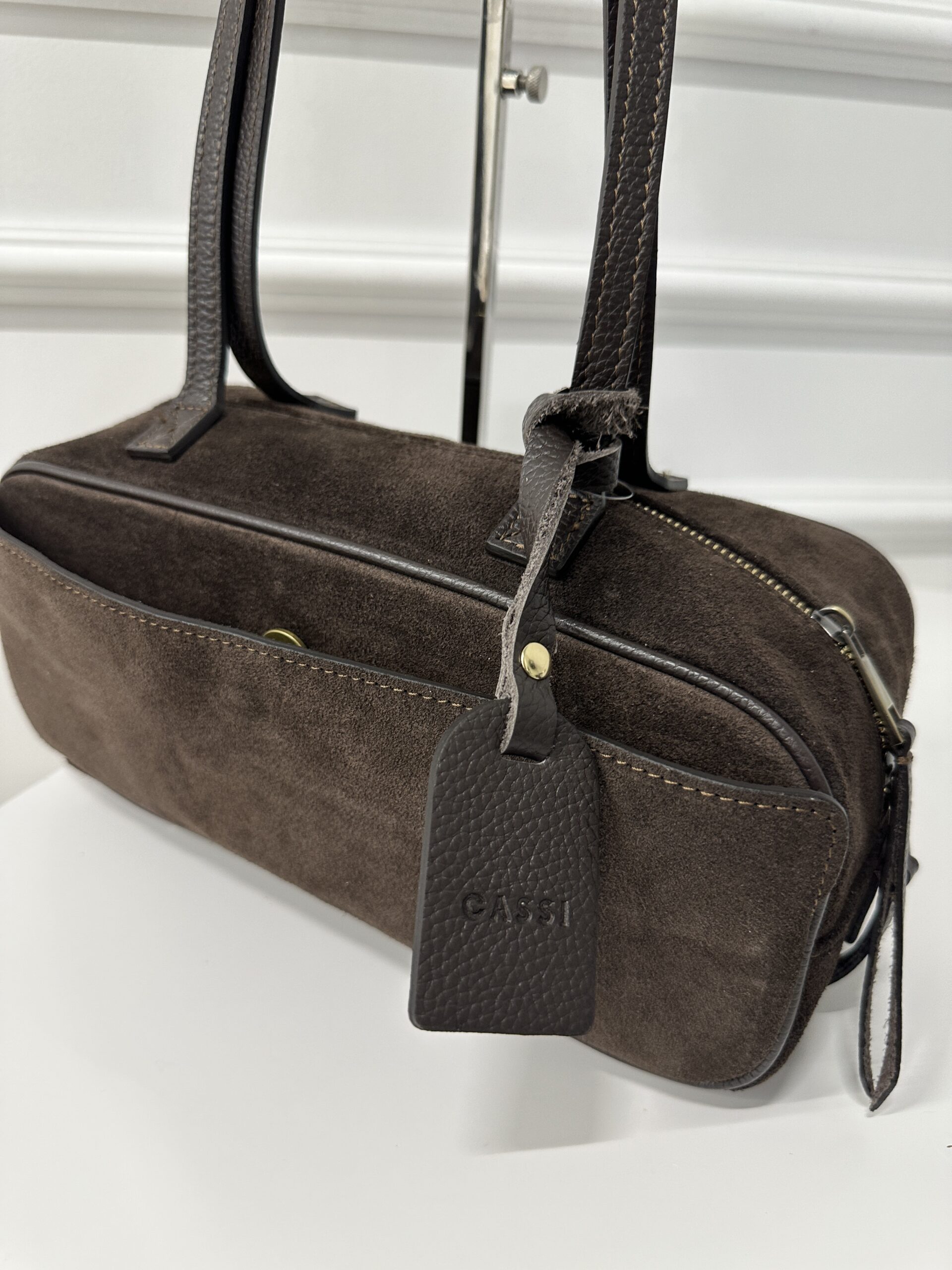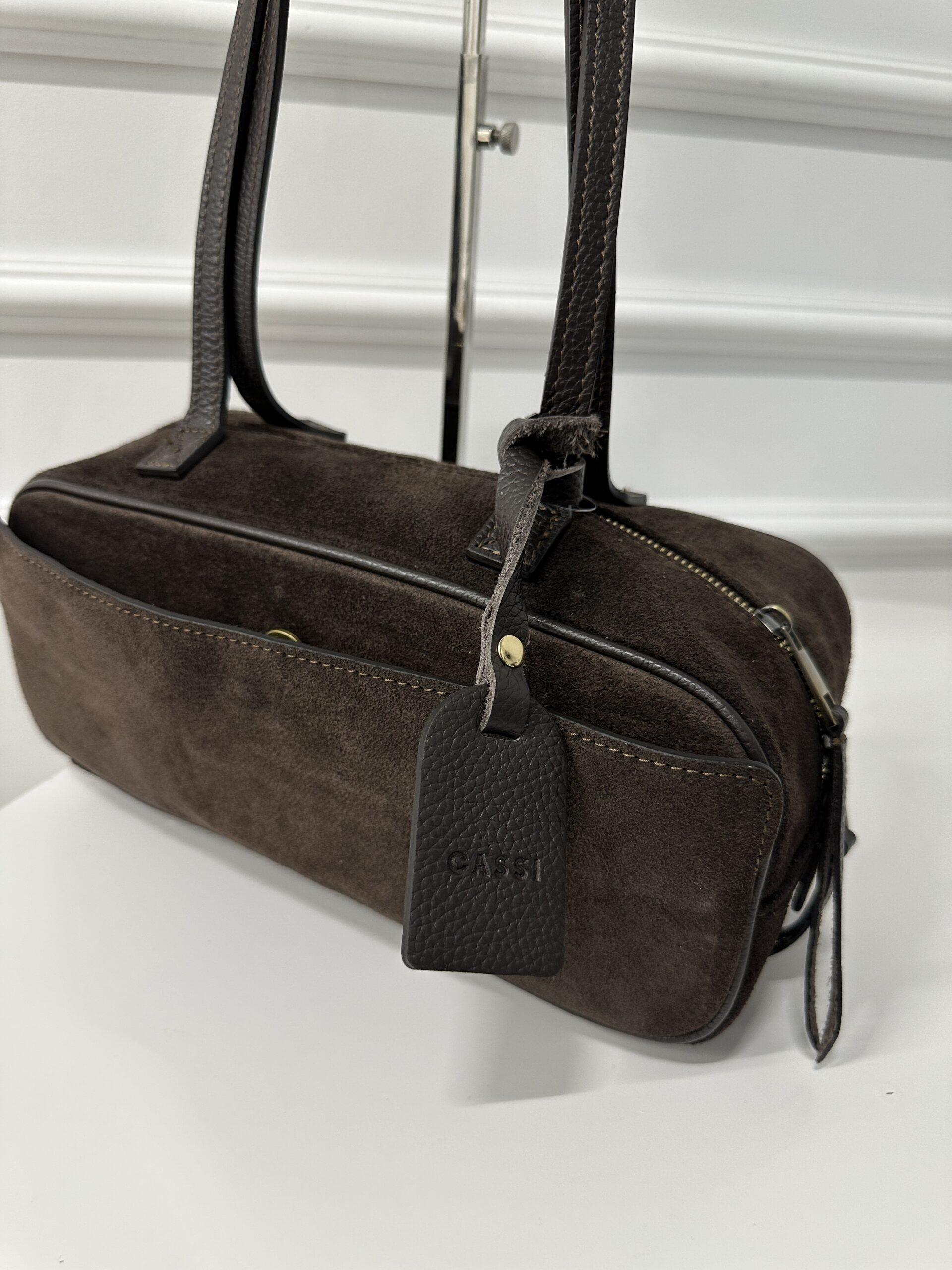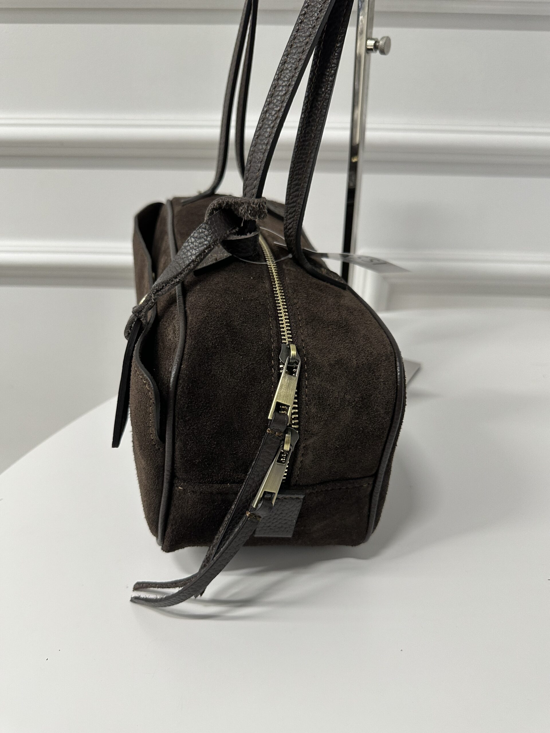 Torebka zamszowa z dodatkami ze skóry licowej. Ten model idealny jest dla kobiet ceniących połączenie stylu i wygody.Torebka wykonana z wysokogatunkowej skóry zamszowej , urzeka swoją miekką strukturą,zapwewnia komfort użytkowania na co dzień.Wnętrze zapinane na podwójny zamek. Skórzane paski i delikatne detale dodają torebce subtelnego modeowego wyrazu, które przyciągają spojrzenia.Torebka ma pojemne wnętrze klasyczna forma sprawi , że torebka pasuje do każdej stylizacji.