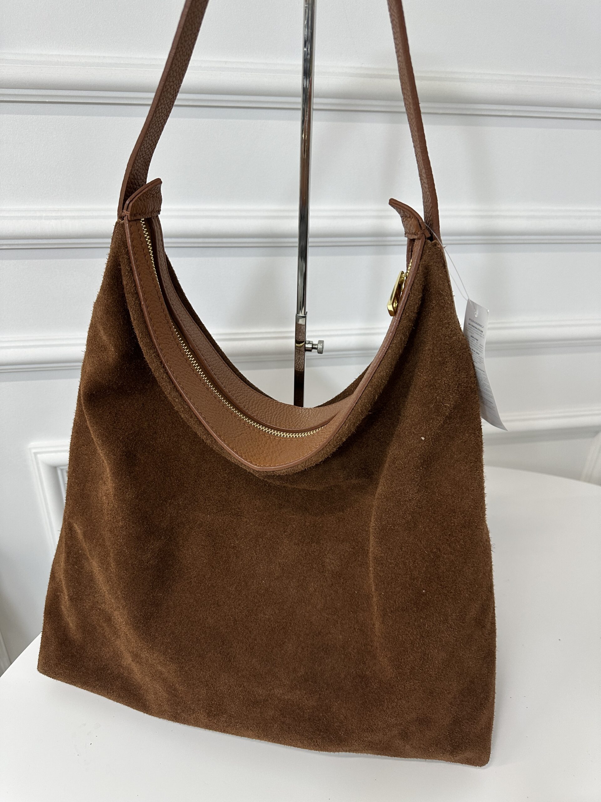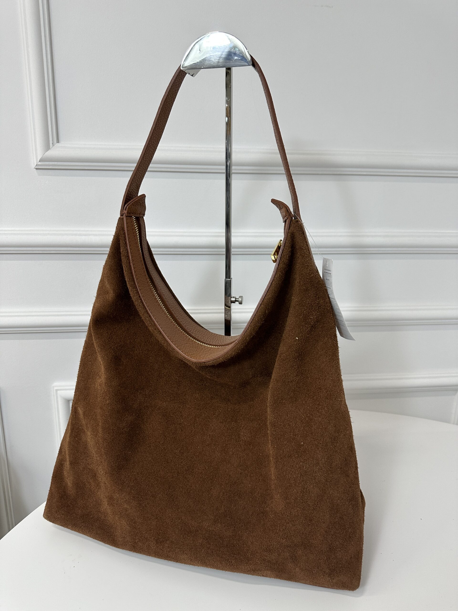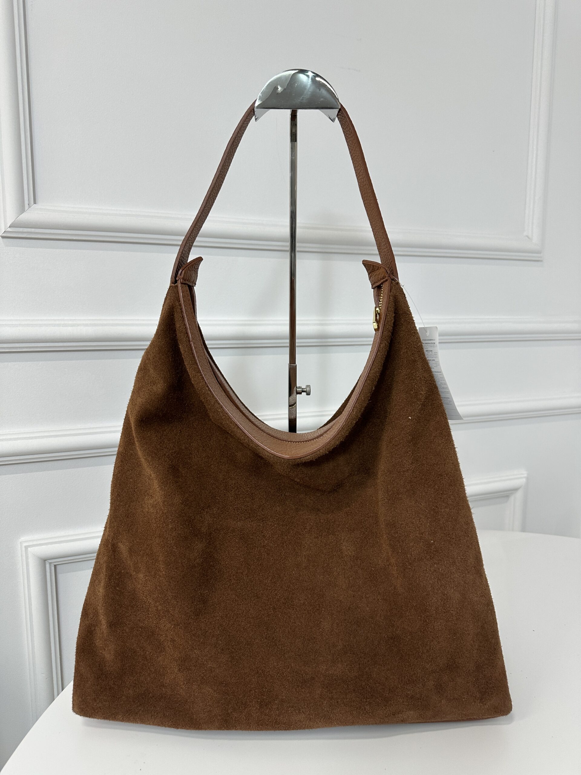 Świetnie wykonana z dbałością o każdy szczegół  zamszowa worek  w kolorze camelowym. Wygląda niezwykle oryginalnie i stylowo- połączenie elegancji  i nowoczesności ,Wewnątrz torebki jedna komora z dodatkową kieszonką na drobiazgi. Torebka posiada wygodną slórzną rączkę. Torebkę można nosić w ręku i na ramieniu. Okucia w kolorze złotym . Torebka zapinana na suwak.