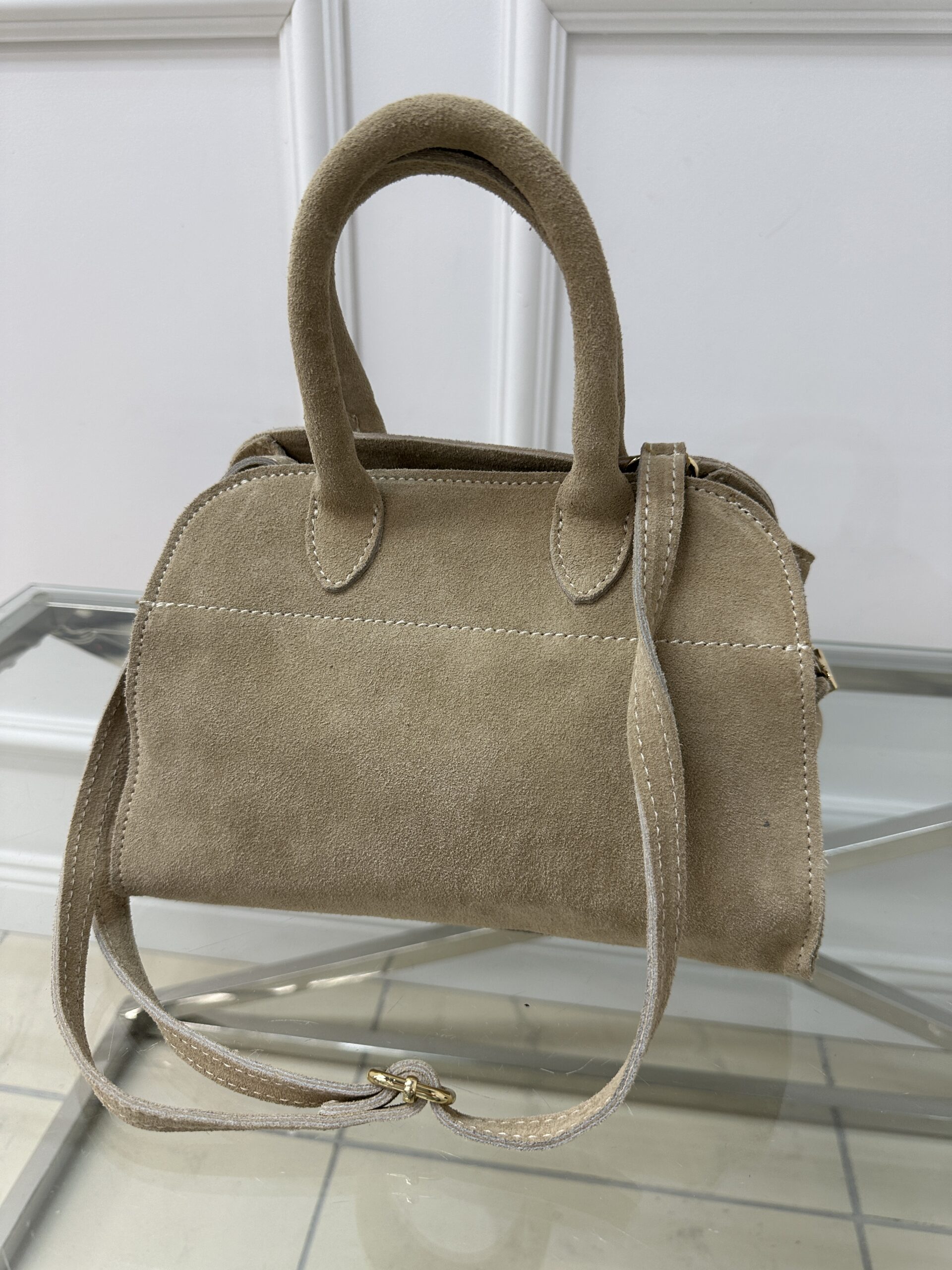 Uwaga Proszę zwrócić uwagę ze zamszowe torby mogą farbować ubrania zwłaszcza w jasnych odcieniach. Zalecamy unikanie kontakty z ubraniami w jasnym kolorze .