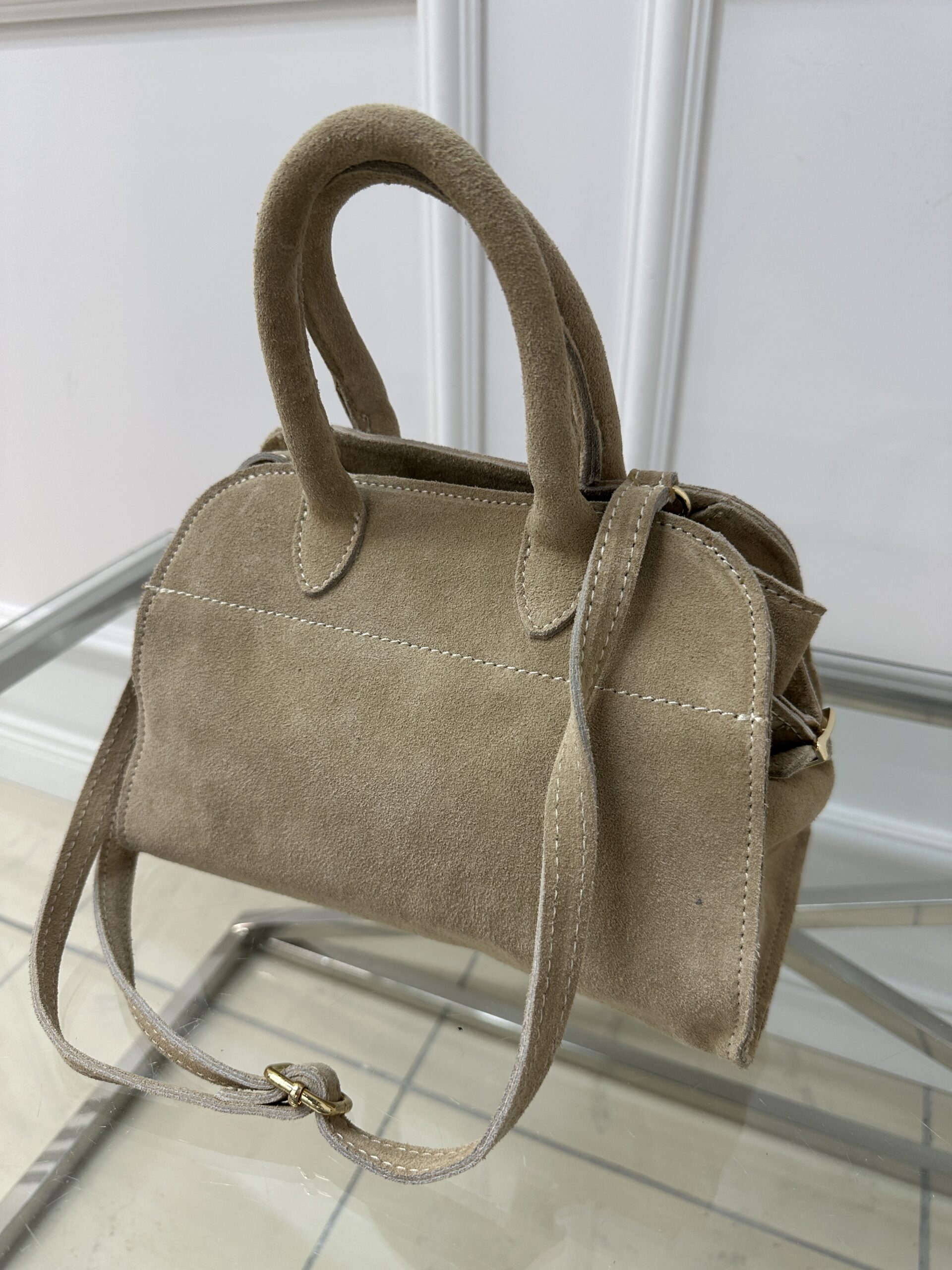 Zamszowy mini kufer – beż
