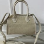 Torebka zapinana na suwak .Model ma wygodna rączkę, Regulowany pasek zamszowy .Torebka jest niezwykle pakowana i pięknie odszyta , po bokach dekoracyjne klamry na zamszowych paseczkach które regulują pojemność kufra . Okucia w kolorze złotym.