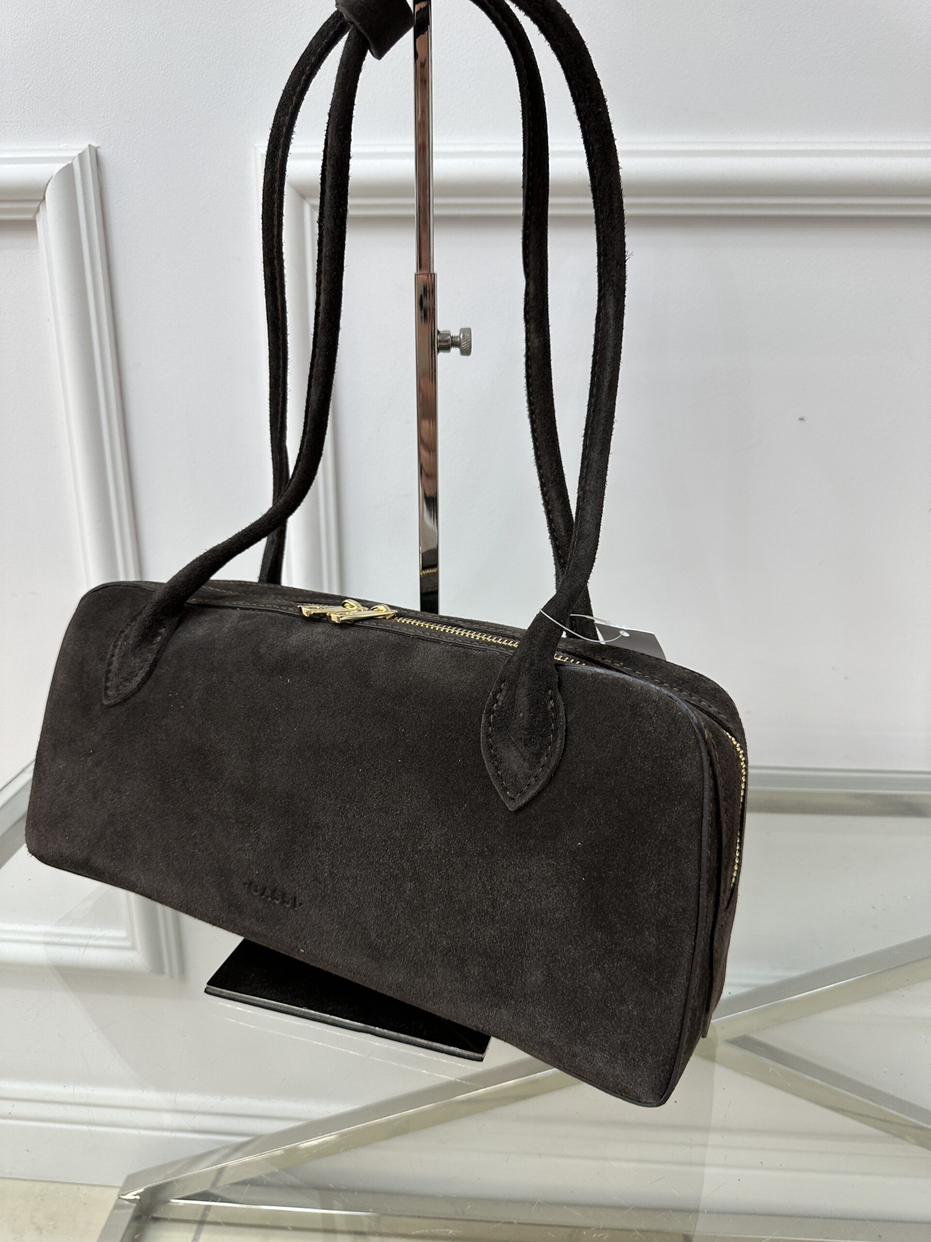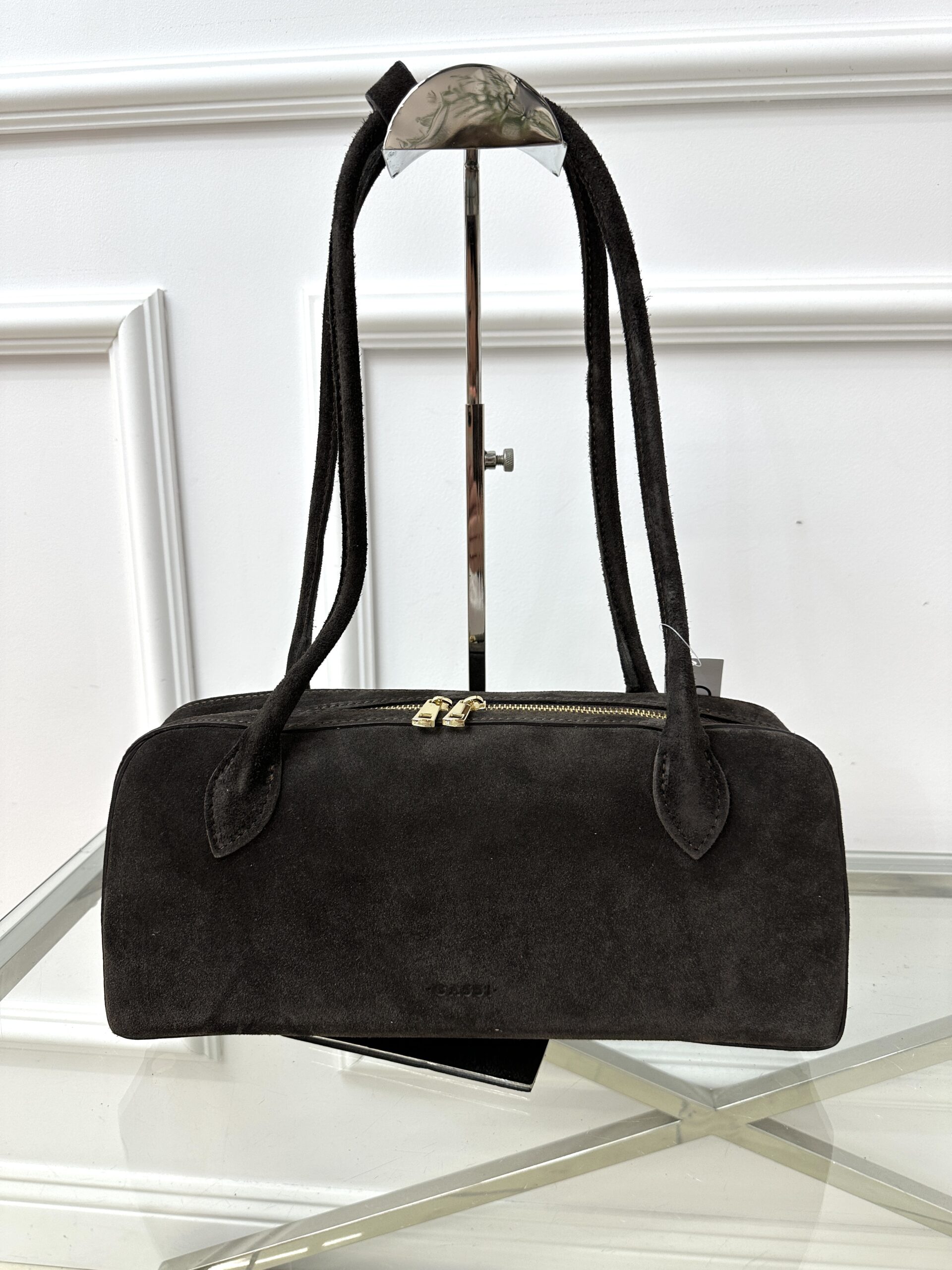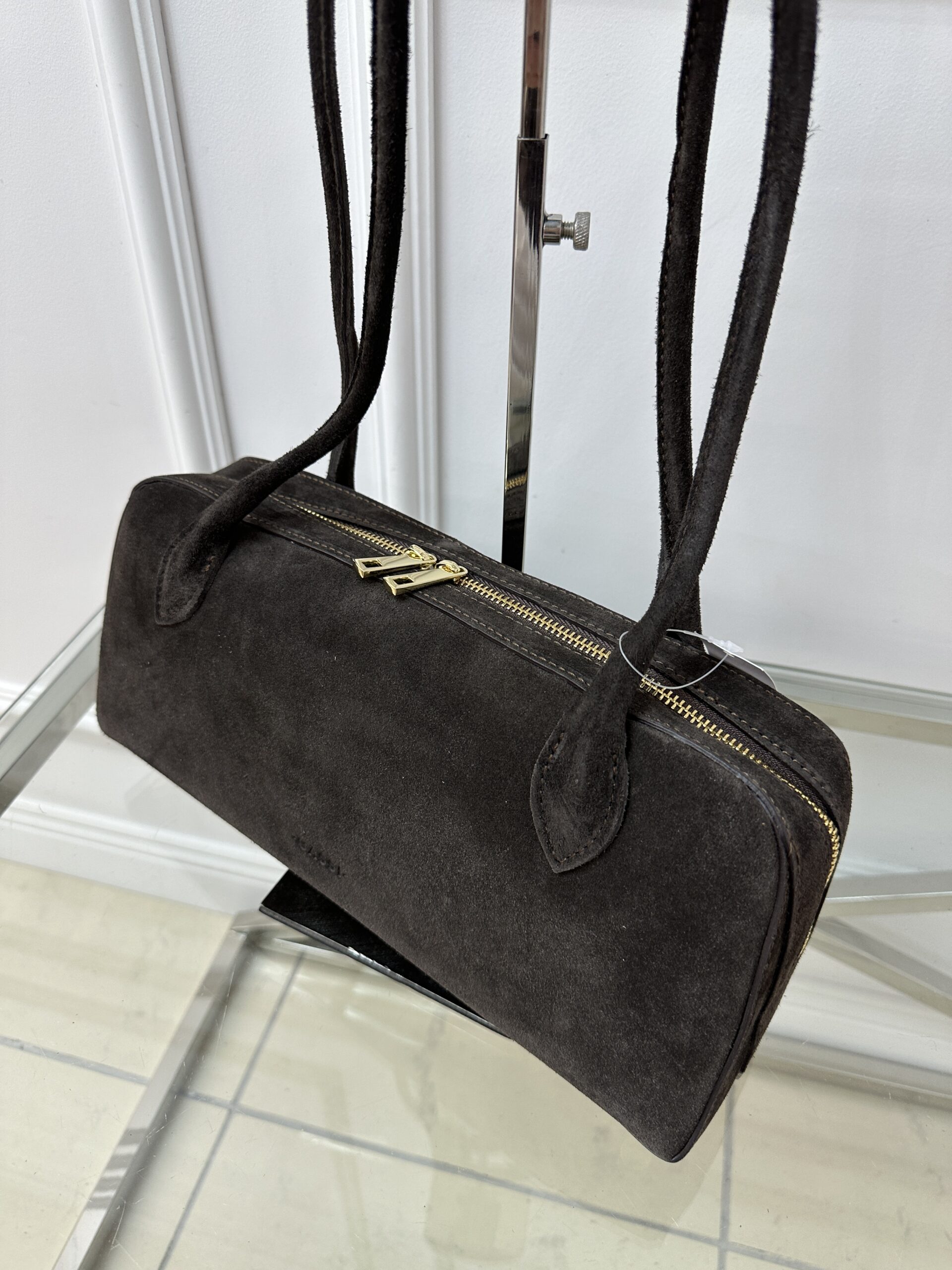 Świetnie wykonana z dbałością o każdy szczegół w niezwykłym kształcie torebka . Model torebki wykonany z wysoko jakości skóry zamszowej w kolorze brązowym . Ta zamszowa torebka to idealny dodatek na każdą okazje ma ponadczasowy wygląd . Wewnątrz torebki jedna komora z dodatkową kieszonką na drobiazgi zapinana na suwak. . Torebka wyposażona w dwa solidne długie cienkie uchwyty rączki . Ten kształt to must – have sezonu. Z tyłu torebki pieczątka marki Cassi