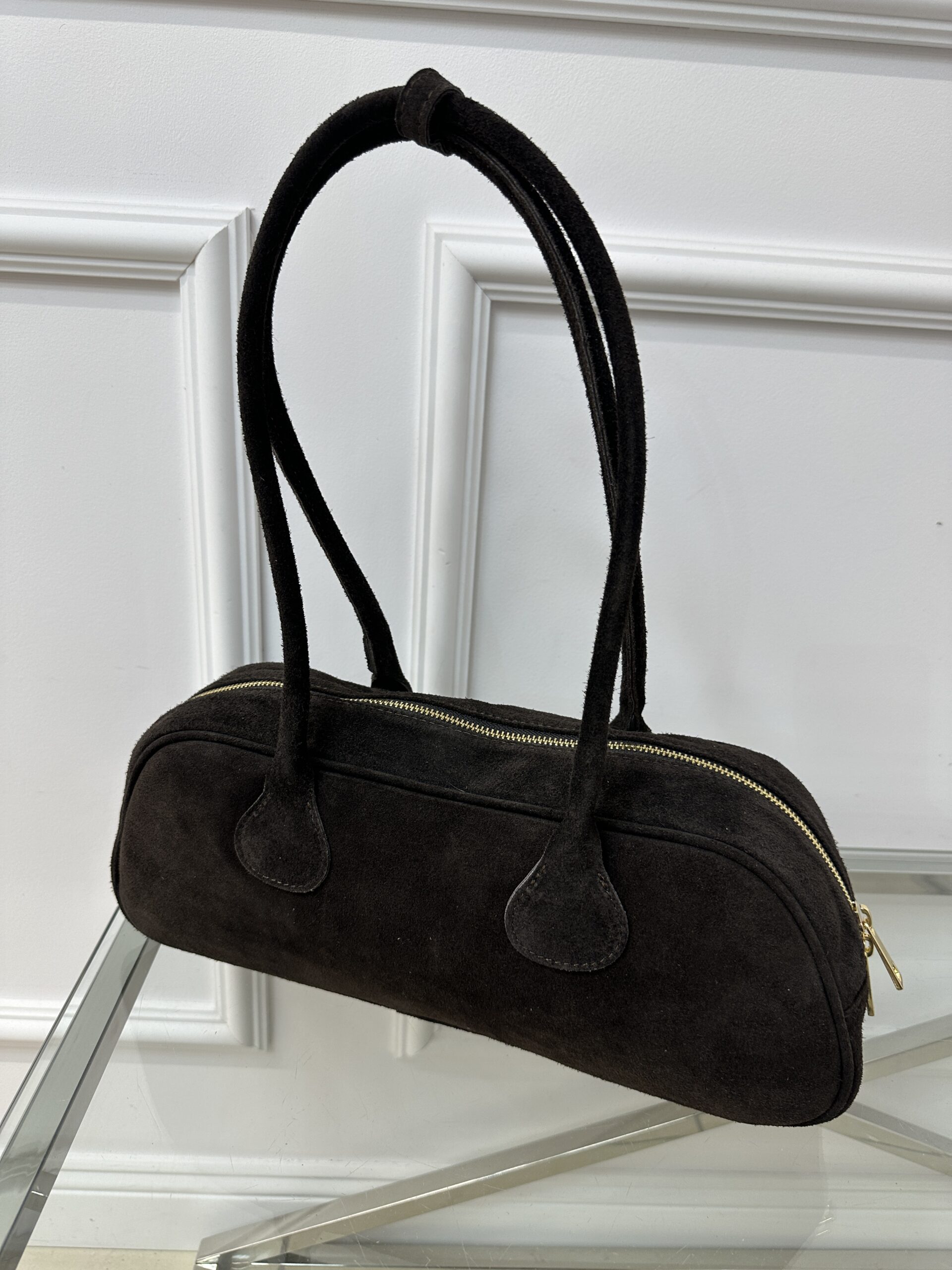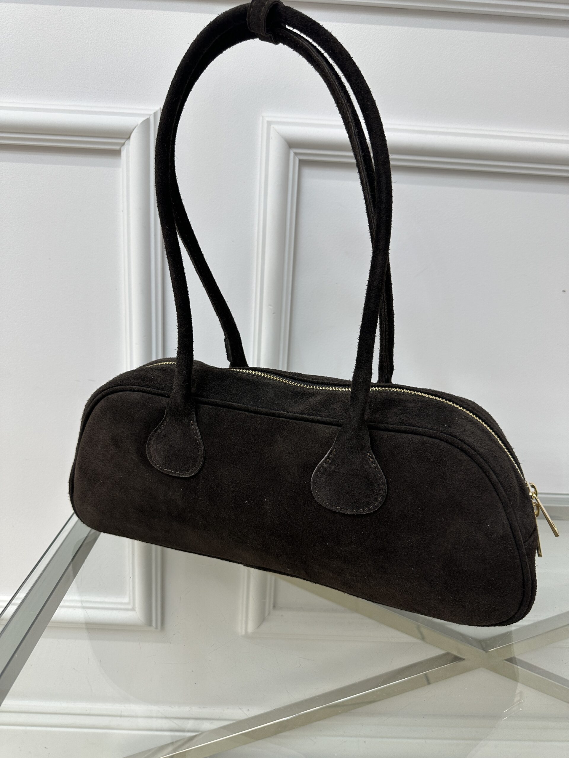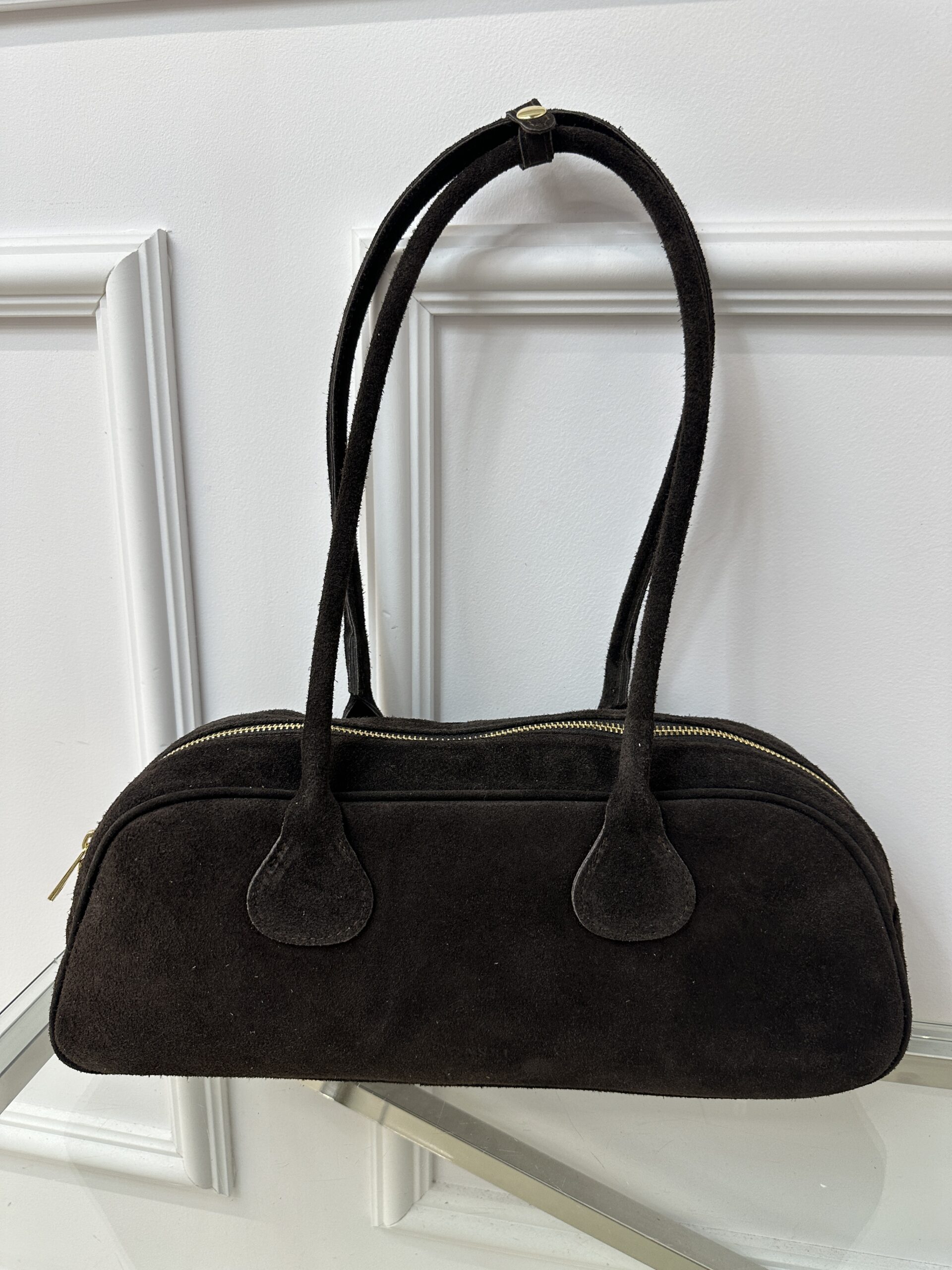 Zamszowa torebka typu bagietka – brąz